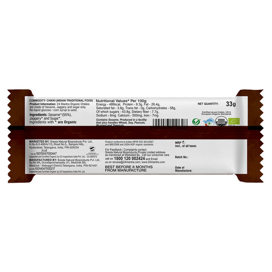 24 MANTRA ORGANIC SESAME JAGGERY CHIKKI ( 20g * 10 )